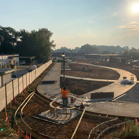Construction of a two-acre town center park for The City of Tucker including earthwork, utilities, below-ground detention, hardscape for flatwork and walls, roadwork with parking, restroom building, custom pavilion, fountains, landscape features, site furnishings, plant material, and irrigation.
